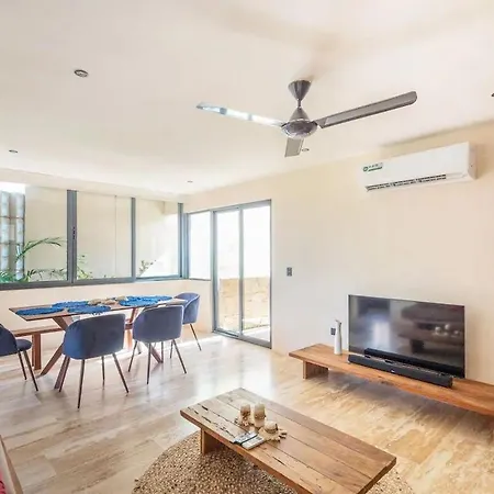 Tijdens hun verblijf in Focus La Veleta Nature Haven Tulum Pueblo appartement van 80 m^2, kunnen gasten het Maya Ruïnes van Tulum bezoeken, gelegen op 6 km verderop. Het appartement heeft een draadloos internet in de hele accommodatie.